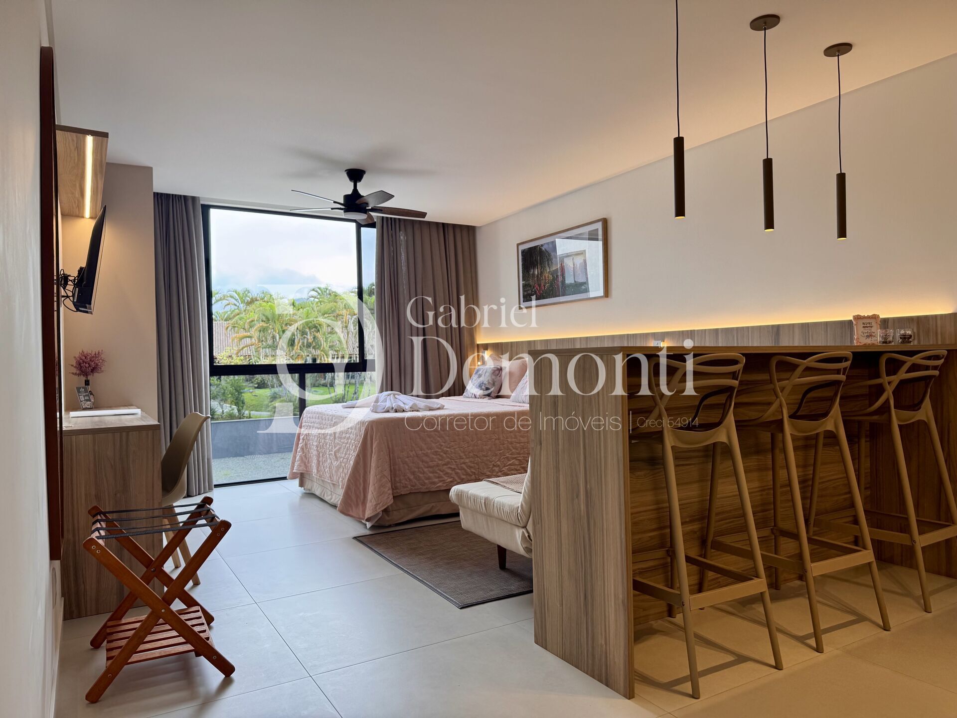 A posição solar é outro ponto forte: o sol da manhã ilumina naturalmente os ambientes, deixando-os sempre claros e acolhedores. Para completar, o loft já conta com fechadura digital, garantindo praticidade e segurança no dia a dia.